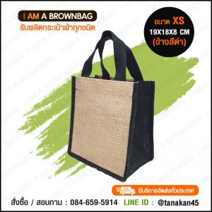 กระเป๋าผ้ากระสอบ แบบหูธรรมดา (ไซส์ XS ข้างสีดำ) ขนาด 19 x 18 x 8 cm