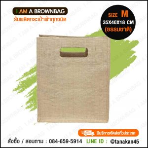 กระเป๋าผ้ากระสอบ แบบหูเจาะ (ไซส์ M ข้างธรรมชาติ) ขนาด 35 x 40 x 18 cm