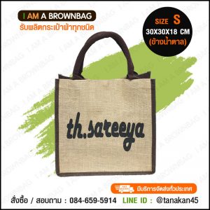 กระเป๋าผ้ากระสอบ+สกรีน แบบหูกลม (ไซส์ S ข้างสีน้ำตาล) ขนาด 30 x 30 x 18 cm